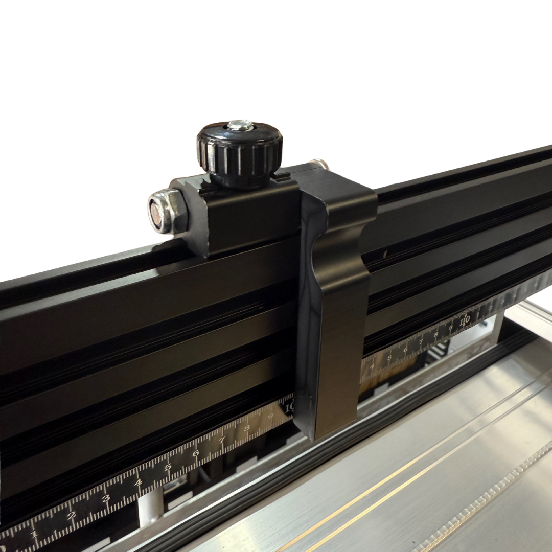 Bonus ruler fence and sliding stop for repeat cuts with millimetre accuracy.